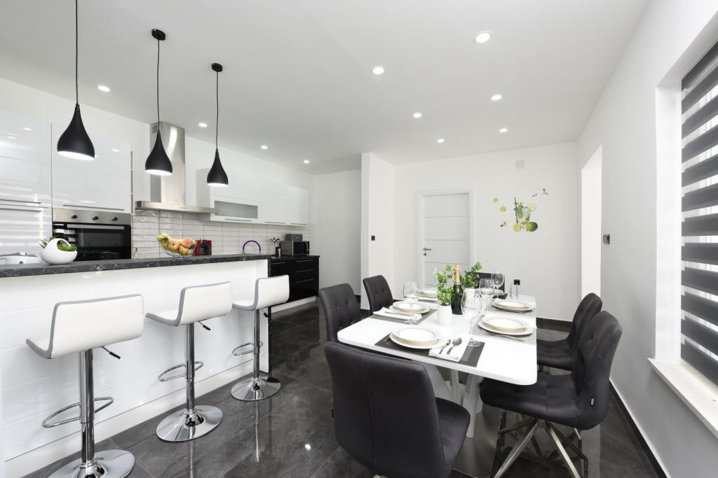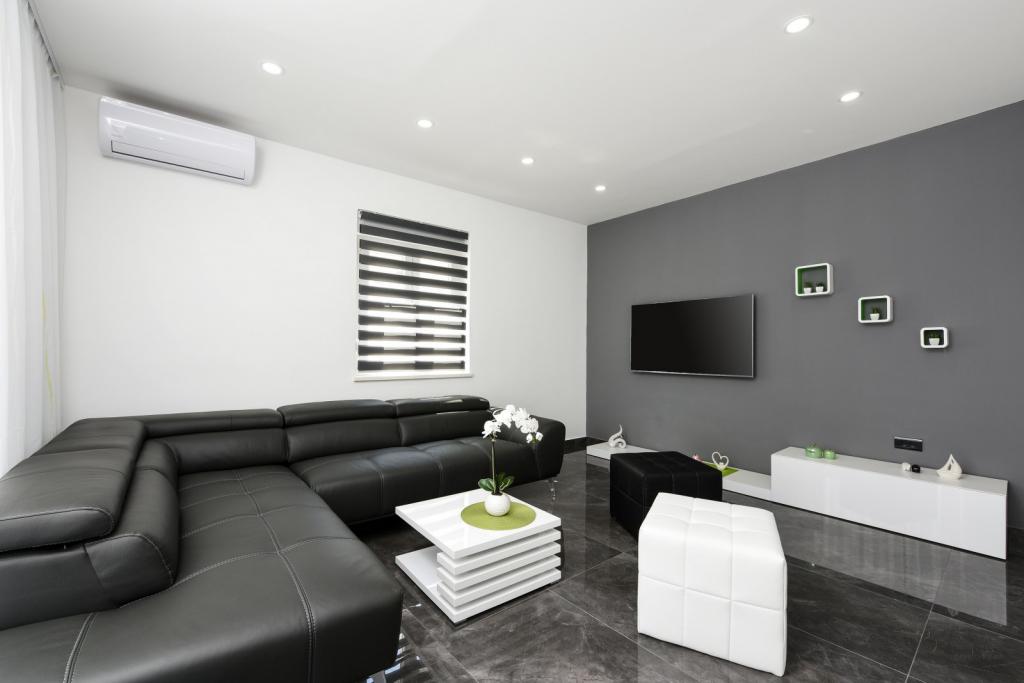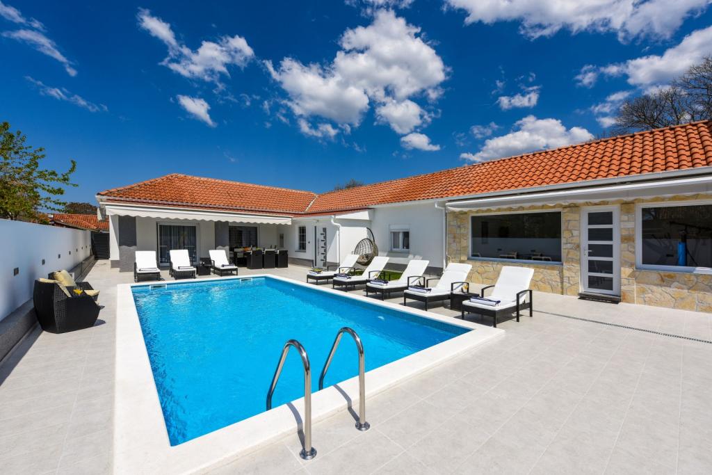 Private villa Mare with heated pool. Located between the city of Zadar (2km) and the airport (5km). Villa Mare is a newly renovated and fully furnished holiday home. The villa has a private heated pool, three bedrooms (two of which can be converted into a pull-out bed), a living room with a flat screen TV (139cm), a fully equipped kitchen with a dining area, two bathrooms, a party room (billiards, darts, PlayStation), a fitness area with a flat screen TV (139cm). All rooms are air-conditioned. The villa also offers a summer kitchen with an indoor barbecue. The villa is also rented from 1.10 to 1.4 at a price of 3000 euros per month, while the minimum rental period is one month.