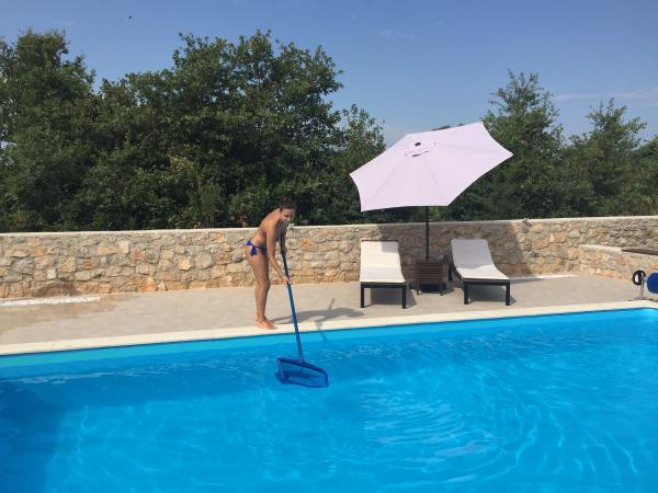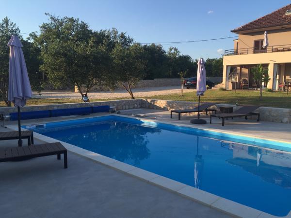 Fully equipped and modern holiday home in a quiet rural setting to accommodate max. 8 people. Suitable for two families or groups of friends. From Zadar 13 km or ten minutes. drive and 6 km from the sea (Sukosan). The house consists of two floors fully equipped, the garden of 1400 meters is located outdoor pool dimensions 8x4x1, 5 with sundeck, children's playground, garden barbecue, parking for 3 cars. All Zelna peaceful and pleasant holiday are welcome