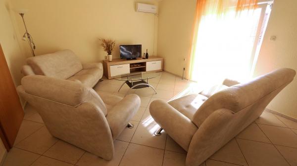 Completely equipped villa consisting of two levels, each level has a separate and 120m2. You can rent one floor price per night is 70eur. . The house has a large garden where there is a grill, outdoor shower, a place to rest as well as car parking and garage. Near the house there is a restaurant, cafe, market, and from the sea is only 2 km. In an extremely quiet location ideal for a holiday.