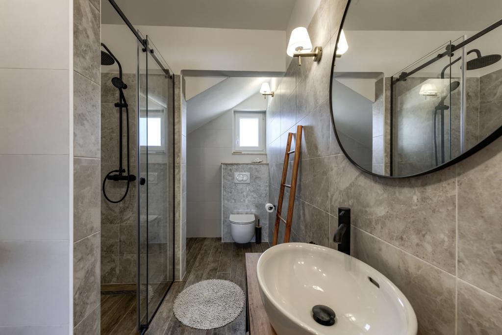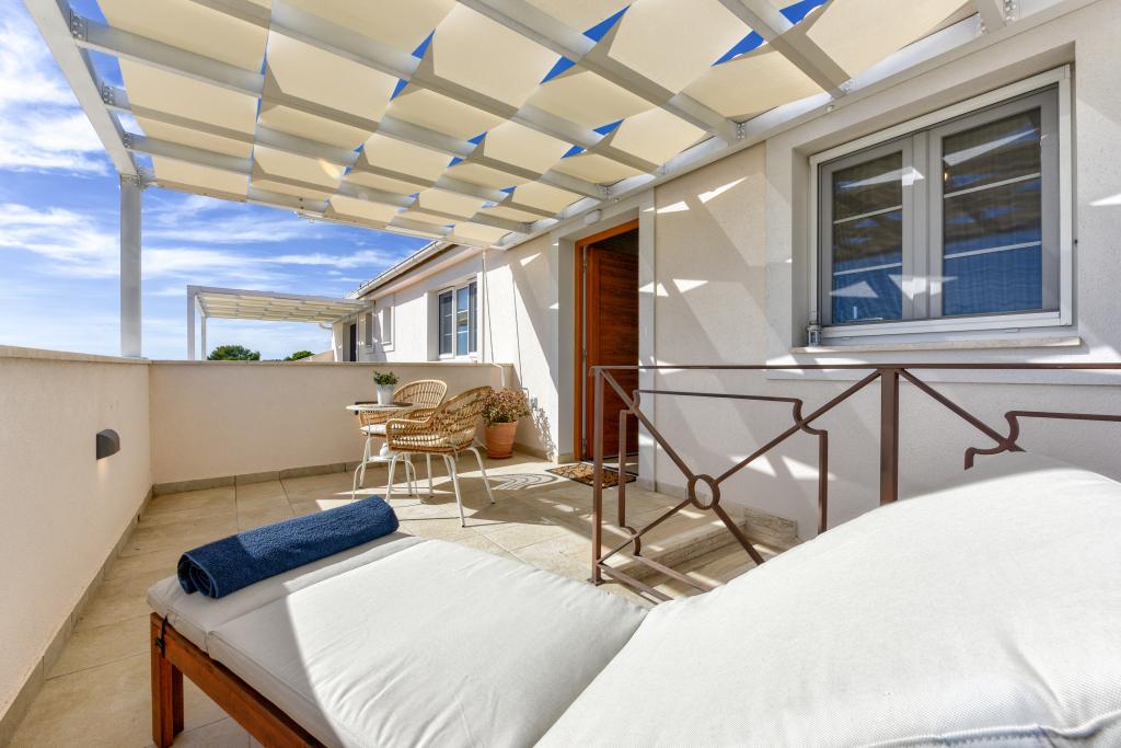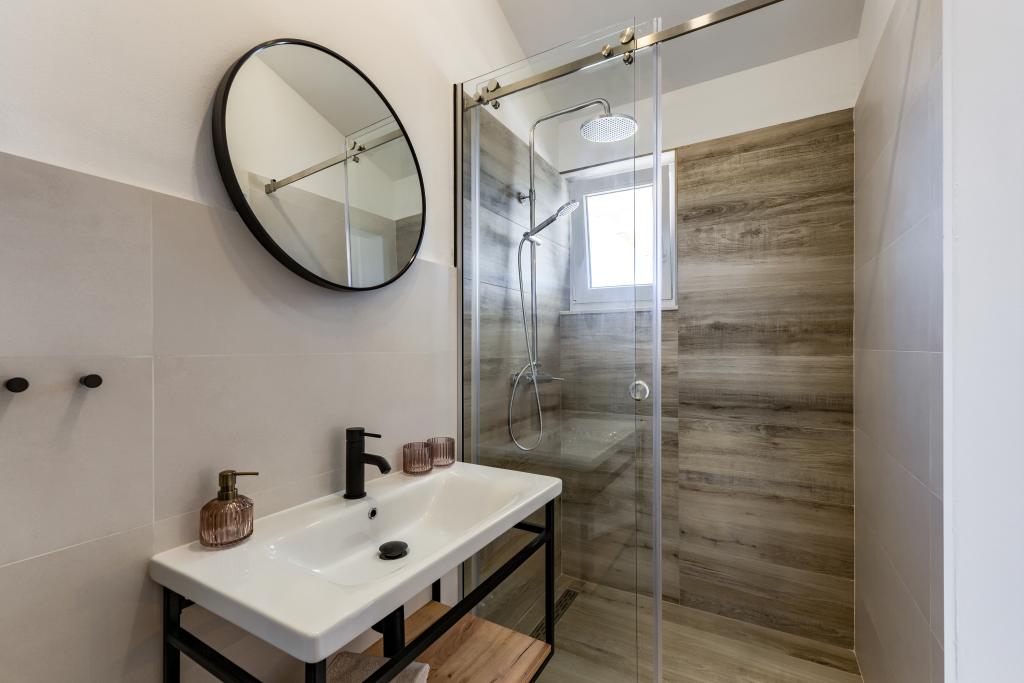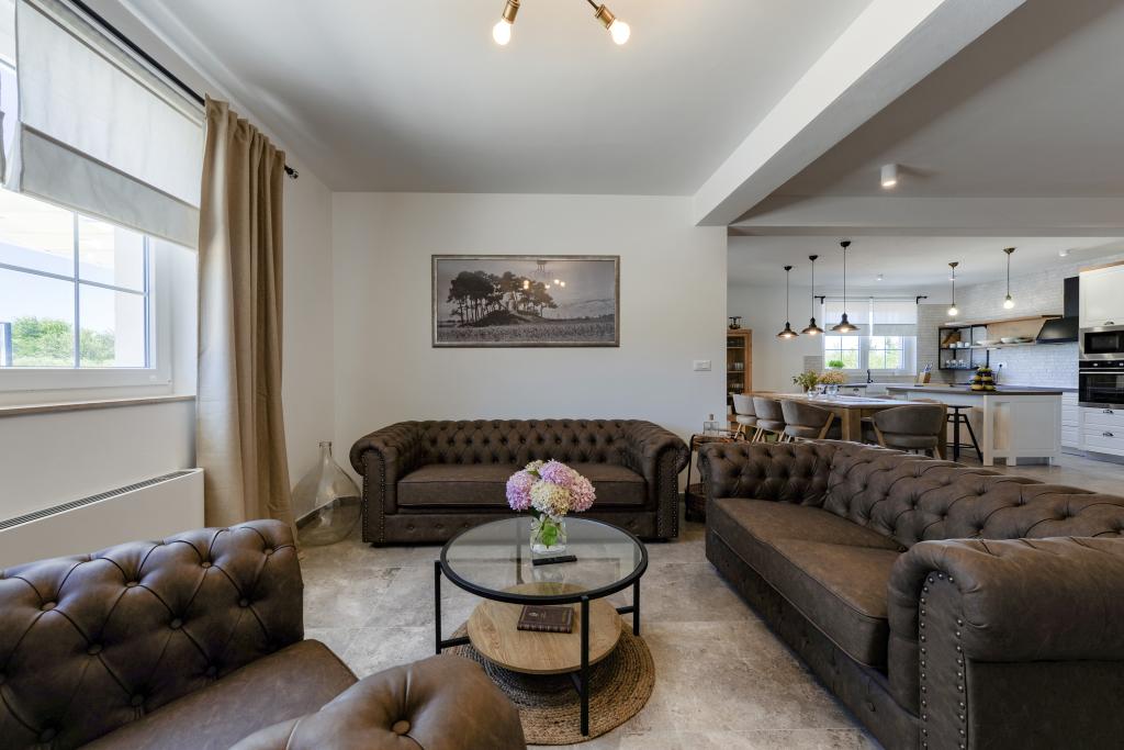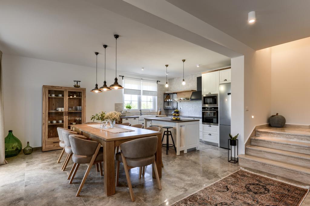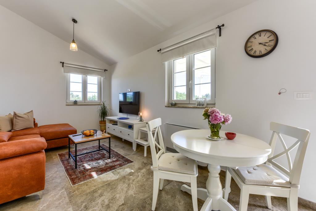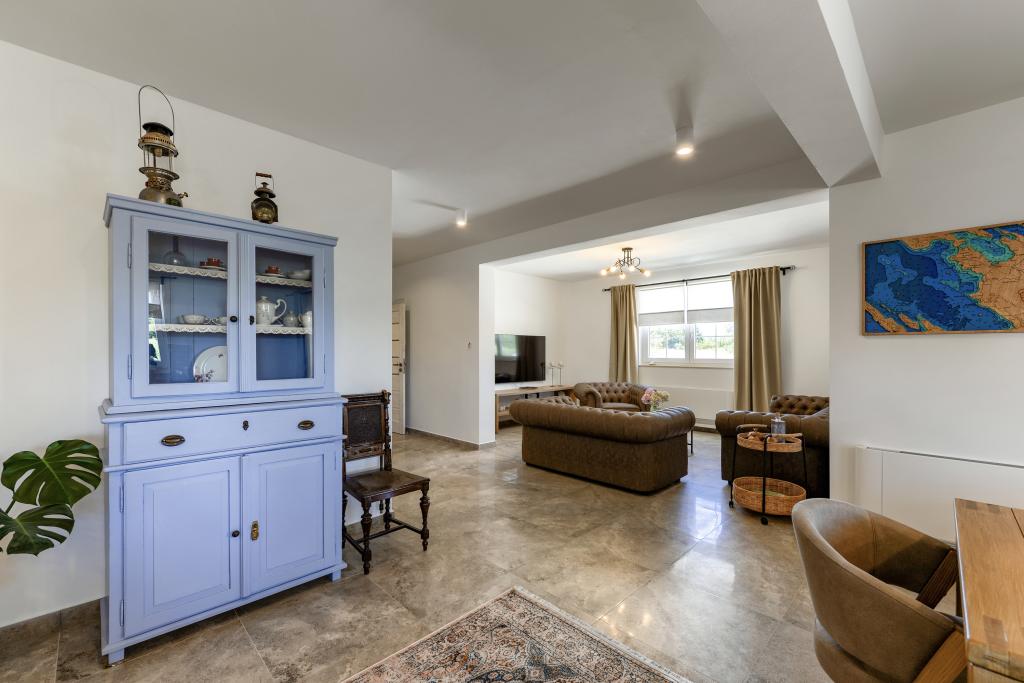 Villa Perosa is a holiday house built in a rustic style in 2022, with a heated and covered swimming pool, located in the tourist resort of Zaton, Nin, on a fenced plot of 9000 m2, surrounded by 150 olive trees and nature. Our vacation home is designed to consist of two apartments, the main apartment consisting of an entrance hall, bathroom, living room and dining room with kitchen. The internal stairs lead to the first floor where there are: a master bedroom with a bathroom and access to the terrace, two bedrooms and a bathroom. The second smaller apartment, which is accessed via external stairs and a veranda, consists of a living room, a kitchen, a corridor leading to the bedroom and a bathroom. All spaces are heated and air-conditioned. Living rooms and bedrooms have televisions with satellite programs and Internet. The entire holiday home is covered by wireless 5G internet. The house is rented as a single unit. Our swimming pool with heating and mobile cover enables use throughout the year as well as safety for children. Villa Perosa is an oasis that can serve as a base for visiting the sandy beaches in Zaton and Nin as well as exploring historical sights and modern attractions, the "Sea Organ", "Greetings to the Sun", the cities of Zadar and Nin. The Zadar archipelago is full