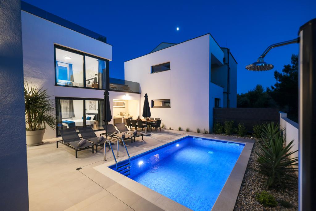 Welcome to Villa Marie, a luxurious four-bedroom haven designed for relaxation and comfort. Each bedroom features its own en-suite bathroom, ensuring privacy and convenience for all guests. Step outside to discover a stunning private pool, perfect for refreshing swims under the sun, along with a sauna and jacuzzi for ultimate relaxation. The fully equipped kitchen is ideal for preparing delicious meals, whether you choose to dine indoors or on the spacious outdoor terrace. Nestled in a charming coastal town, Villa Marie offers a perfect blend of tranquility and modern amenities, making it the ideal escape for families or groups seeking a memorable seaside getaway.