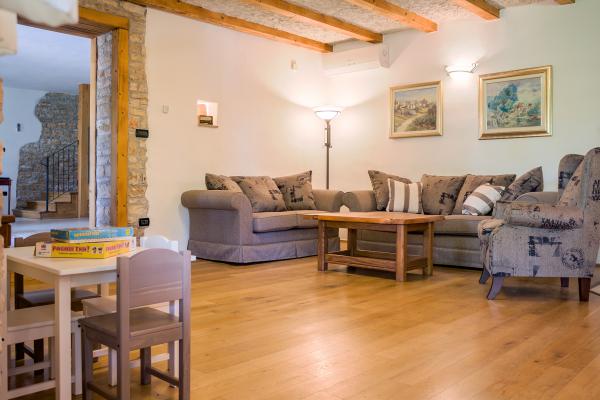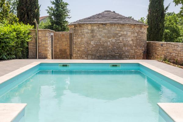 Villa Cala, is located in a small village Slivari a distance of 2 km from the town of Rovinj. The authentic Istrian house was built during the 19th century, a complete restoration experienced in 2007. The villa has an area of 170m2 divided into two floors, a garden has an additional 1300m2. Villa Cala consists of 3 bedrooms, 3 bathrooms and 1 wc's. All rooms are located on the first floor. The ground floor consists of a large lobby, a toilet, a spacious living room with fireplace and kitchen with dining room. All rooms, including the entrance hall and living room equipped with air conditioning which is enabled and heating and cooling. The house is available and free Wi-Fi. The house has a large terrace with table and lawn on which lies the pool.