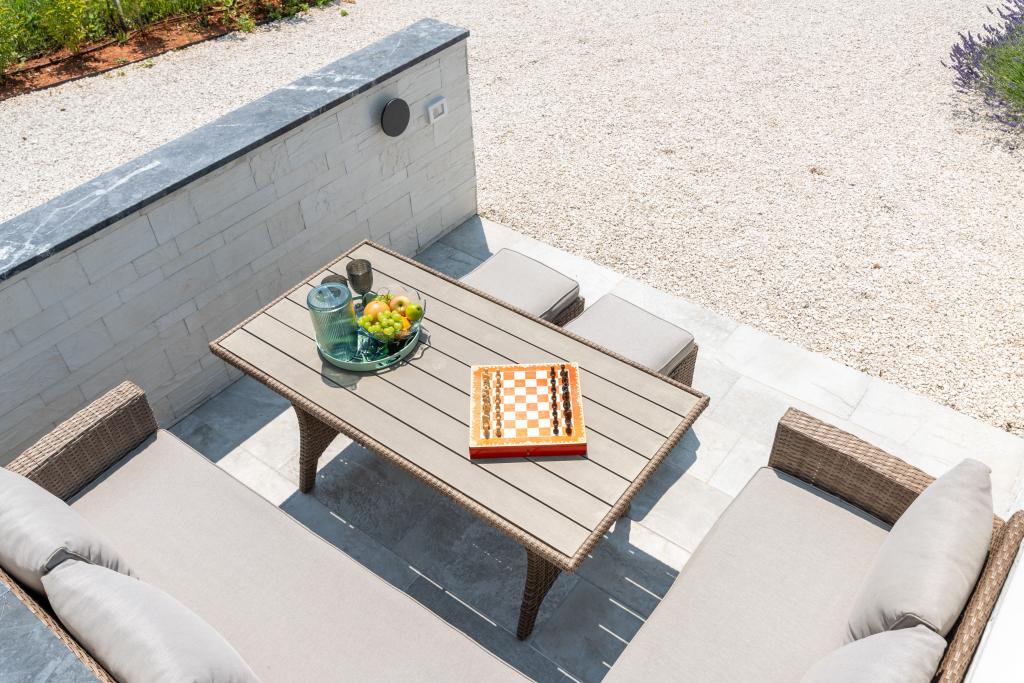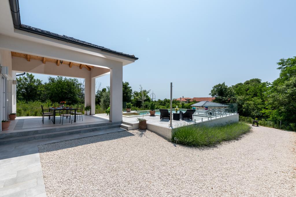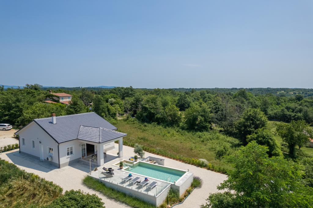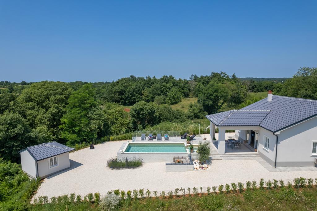 Villa Sienna is located in Žminj (central Istria). The total size of the villa is 130 m2 for a maximum of 4 people. There is also a fully equipped kitchen with dishwasher, washing machine, refrigerator with freezer, coffee machine, oven, microwave oven. The living room also has a smart TV, air conditioning and a sofa bed with a total size of 160 x 200 cm. It has two bedrooms. Each bedroom has a double bed 160 x 200 cm. smart TV and air conditioning. It has 2 bathrooms with shower, toilet and sink. The 1000 m2 yard is completely fenced. There are also 2 parking spaces for guests. In front of the house is a fully covered terrace with a pool of 8 x 4 meters, jacuzzi, outdoor shower, barbecue, deckchairs. The house is located 2.5 km from a shop, restaurant, gym, pharmacy. The first beach is about 20 km from Villa Sienna.